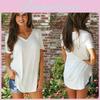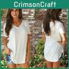 Stylish Women's Short Sleeve V-neck Hem Loose Casual Tee T-shirt For Summer Days