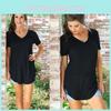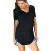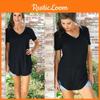 Women's Short Sleeve V-Neck Hem Loose Casual Tee T-Shirt Summer Tunic Top Blouse