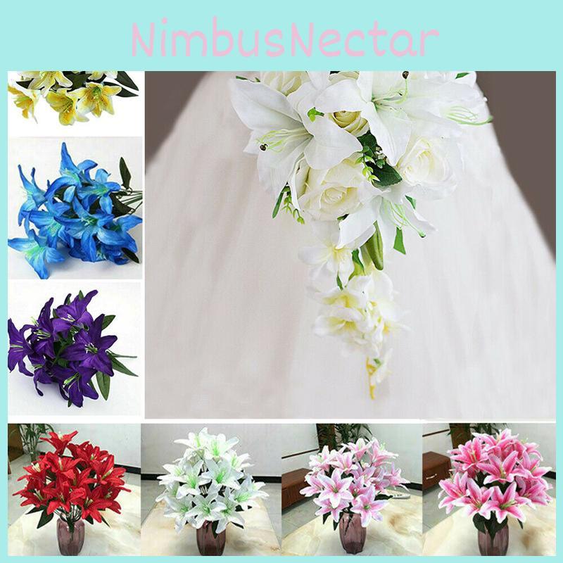Elegant 45cm 10 Heads Artificial Stargazer Lilies Chic Silk Flower Bouquet For Weddings
