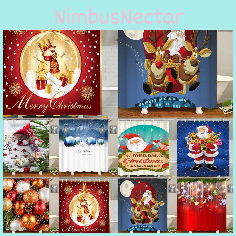 Vibrant Waterproof Christmas Shower Curtain With Santa Claus And Snowman For Bright Holiday Decor