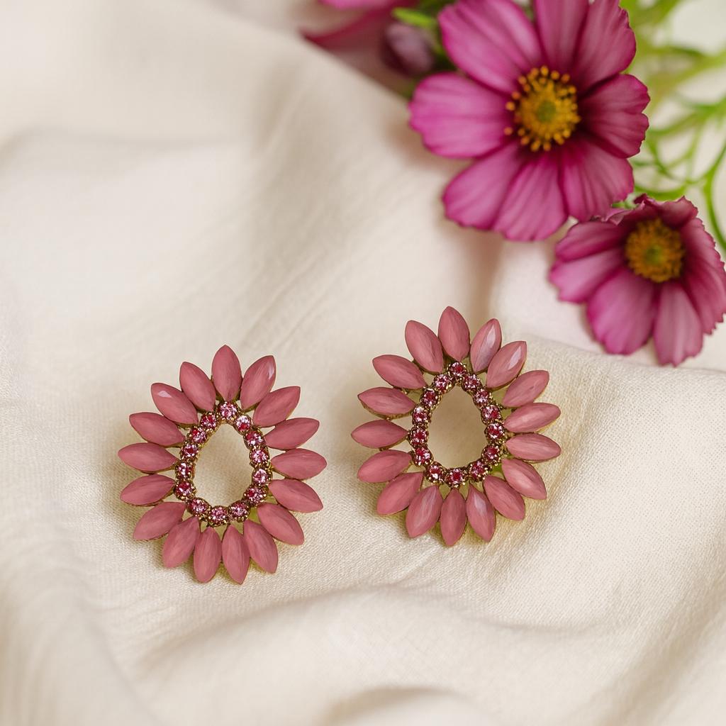 Vintage Pink Glass Pavé Floral Stud Earrings