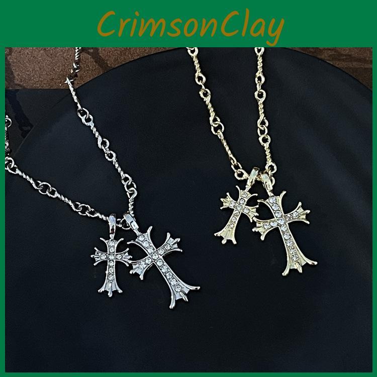 Features: Material: High-quality alloy with an electroplated finish for a Chain Length: Adjustable length of 41cm to 50cm Pendant Type: Double cross pendant featuring intricate detailing and Style: Chic and sophisticated Baroque style Applicable Group: Specifically designed for women