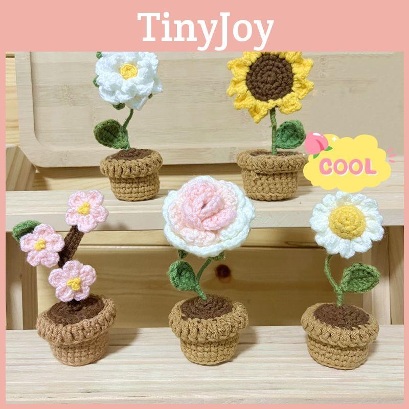 Potted Plant Handmade Crochet Artificial Knitting Flower Home Decor Diy
