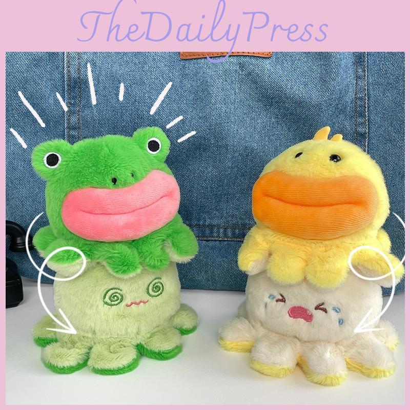 Fluffy Frog And Duck Keychain Charming Plush Doll For Couples Convertible Face