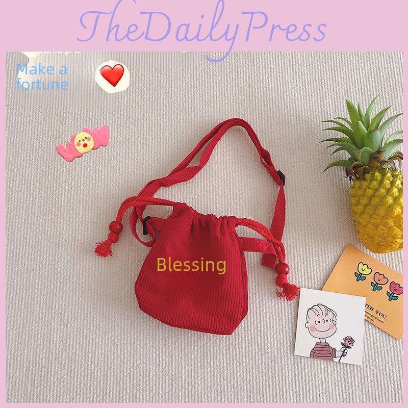 Cute Embroidered Children's New Year Bag Adorable Cotton Crossbody Purse For Girls