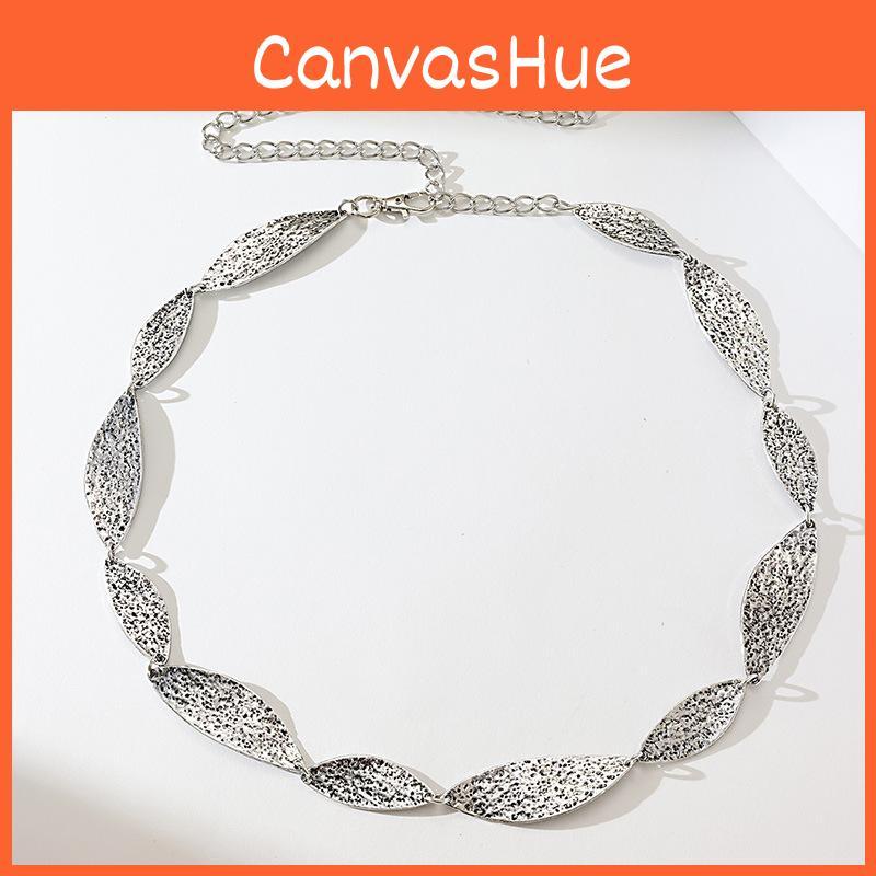 Ladies Vintage Leaf Texture Metal Waist Belt With Hook For Retro Spring Summer Wear