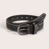 This versatile women's belt features a hollow geometric design with a sleek, gunmetal-tone buckle made of alloy, supporting a pin closure. Crafted from faux leather, it measures approximately 39 inches in length with a width of 2.8 cm , offering durable style. Suitable for casual or professional wear, it enhances everyday outfits. Wipe clean with a damp cloth to maintain its appearance.