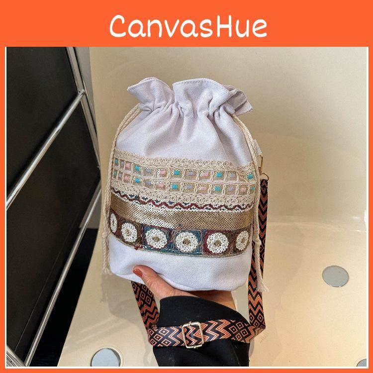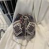 Women's 2024 New Vintage Casual Ethnic Style Bucket Bag Street Fashion Contrast Color Shoulder Bag