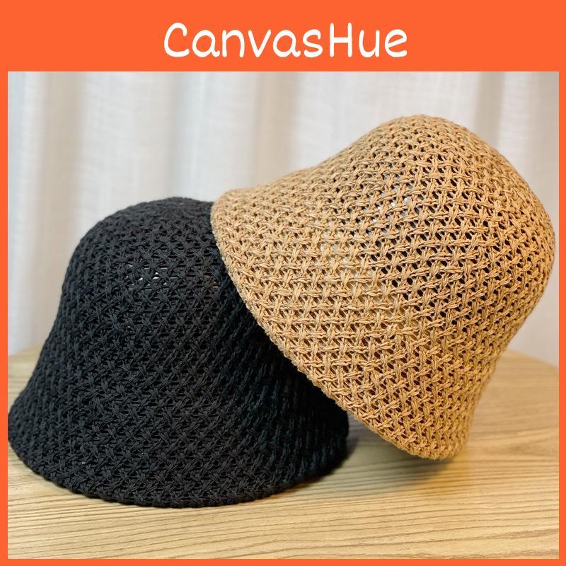 Chic 2024 Spring Summer Fisherman Hat Women's Knit Hollow Out Big Brim Bucket Hat For Sun Protection