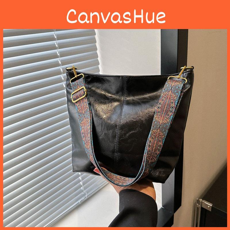 2024 New Simple Casual Bucket Bag Unique Aesthetic Fashion Shoulder Bag Retro Commuter Large Capacity Bag Women Black