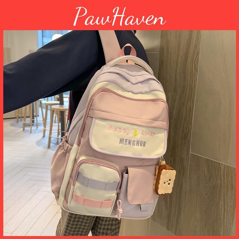 Japanese Style Primary School Girls Backpack Cute Large Capacity Schoolbag High School Campus Wind Double Shoulder Bag White