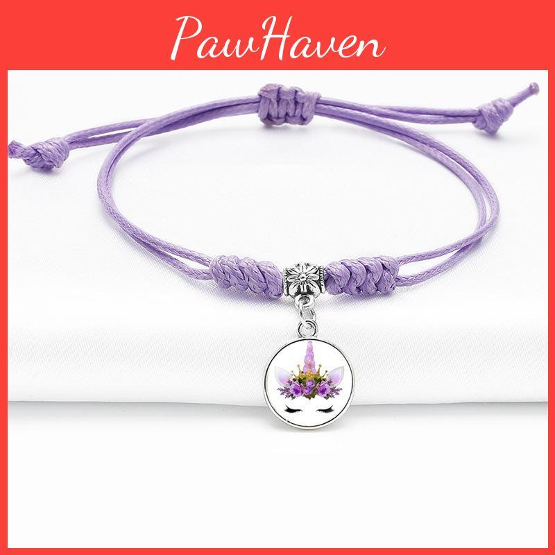 This cartoon-style bracelet is designed with a cute flying horse pendant, depicting the magical unicorn. The unicorn symbolizes purity and imagination, making it a beloved character among children. With its vibrant purple color, this bracelet is sure to catch the eye and add a pop of fun to any outfit.