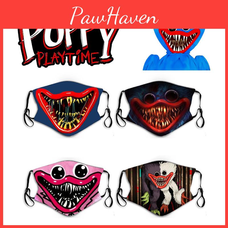 Masca de Față din Bumbac de Halloween Poppy Playtime Huggy Wuggys Pentru Adulți, Ajustabilă, Respirabilă