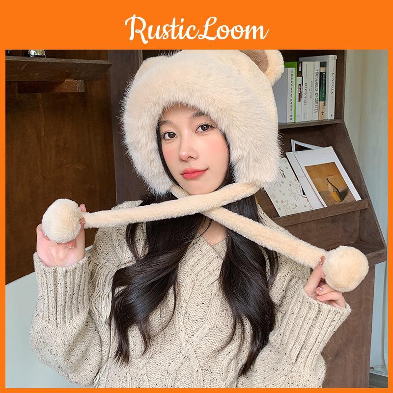 Cute Bear Ear Plush Hat Thickened Warm Winter Knit Cap Fashionable Small Lei Feng Hat