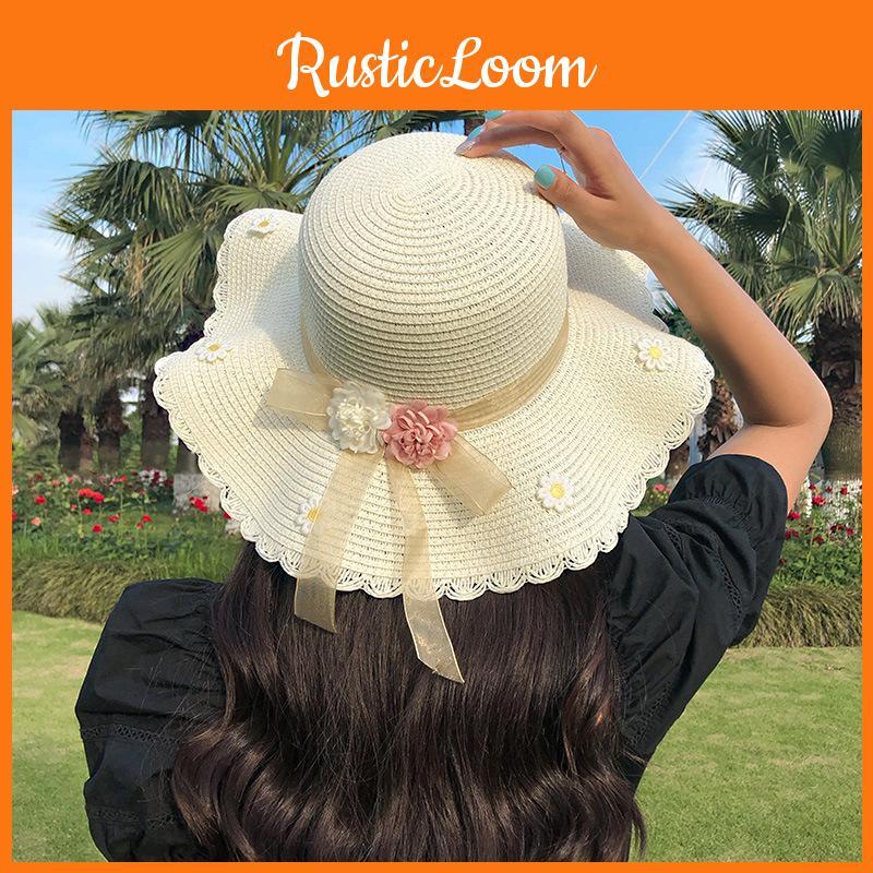 Fashionable Ladies Straw Hat For Summer Outings Sun Protection Hat Floral Beach Hat