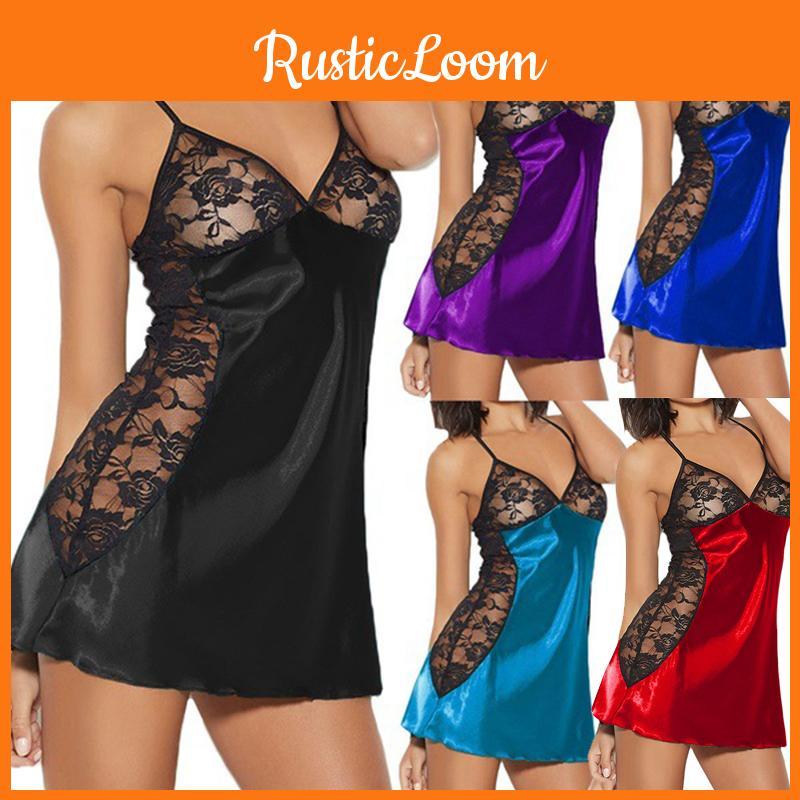 Elegant Womens Lace Strap Lingerie Sleepwear Night Gown Babydoll Dress Set