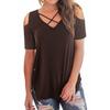 Elegant Women Cold Shoulder Loose Tops Criss Cross Short Sleeve T-shirt Blouse