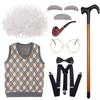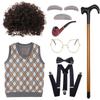 Set Perucă Costum Bunic Clasic Cu Păr Scurt, Moale și Bucle și Vestă Elegantă Pentru Copii