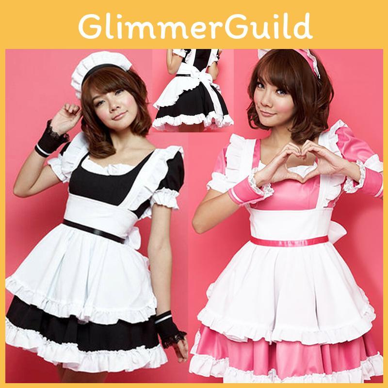 Stylish Black And Pink Maid Uniform Princess Dress Suit For Halloween And Cosplay Occasions