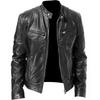 Classic Men's Faux Leather Jacket With Stand Collar For A Sleek Motorcycle Biker Look