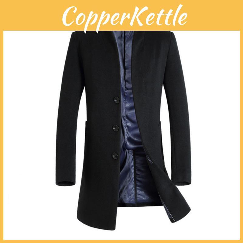 Luxurious Mens Winter Formal Trench Coat Double Breasted Long Wool Jacket Outwear