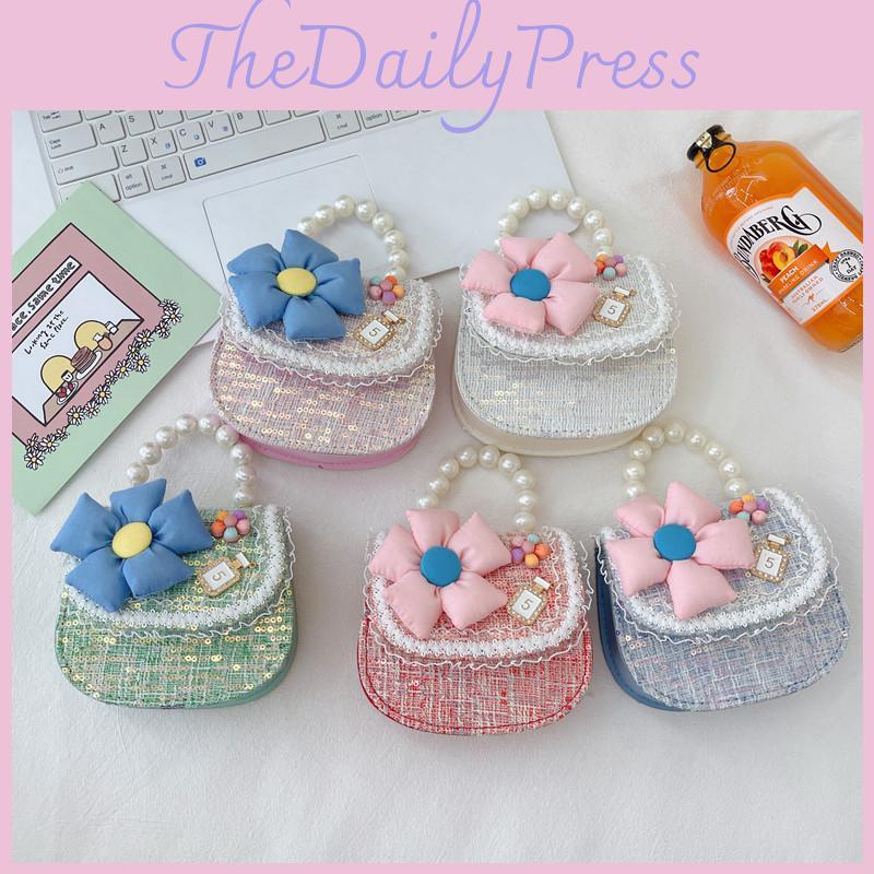 Adorable Pearl Handbag For Girls Sparkling Flower Sequin Shoulder Bag Kids Crossbody Spring Summer 2023