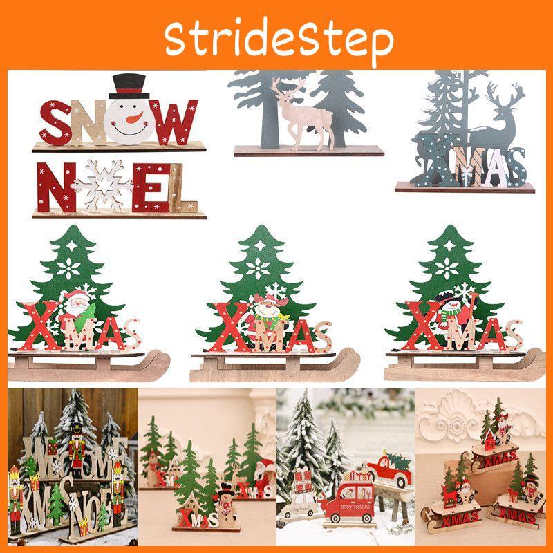 Exquisite Wooden Christmas Decoration Desktop Sign Featuring Reindeer Santa Claus And Snowman