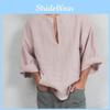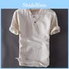 Men's Linen Long Sleeve Shirt Summer Cool Loose Casual V-Neck Shirts Tops M-3XL