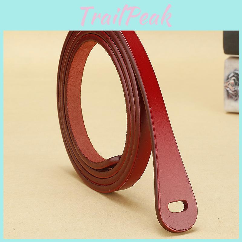 This genuine leather ladies' thin belt features a knot buckle that adds a subtle touch of elegance. Made from durable two-layer cowhide leather, it measures less than in width, ensuring a sleek fit. Available in red, blue, black, white, camel, and coffee, it supports both casual and formal outfits. Ideal for dressing up or down, it enhances any wardrobe. Wipe clean with a damp cloth to maintain its appearance.