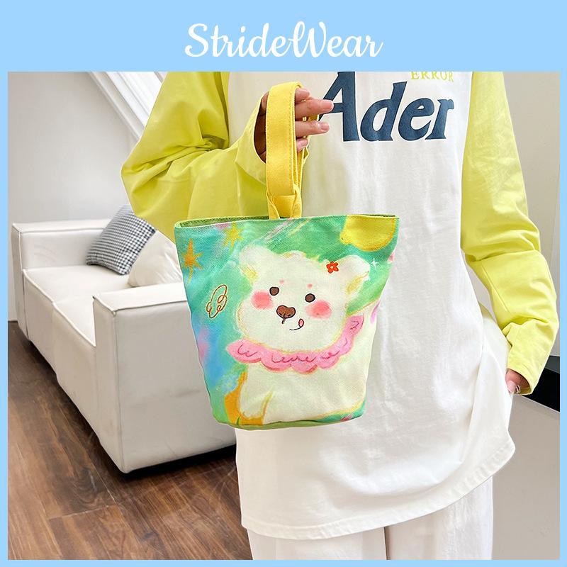 Charming Cartoon Printed Medium Canvas Handbag Unique Bucket Style Mom Bag