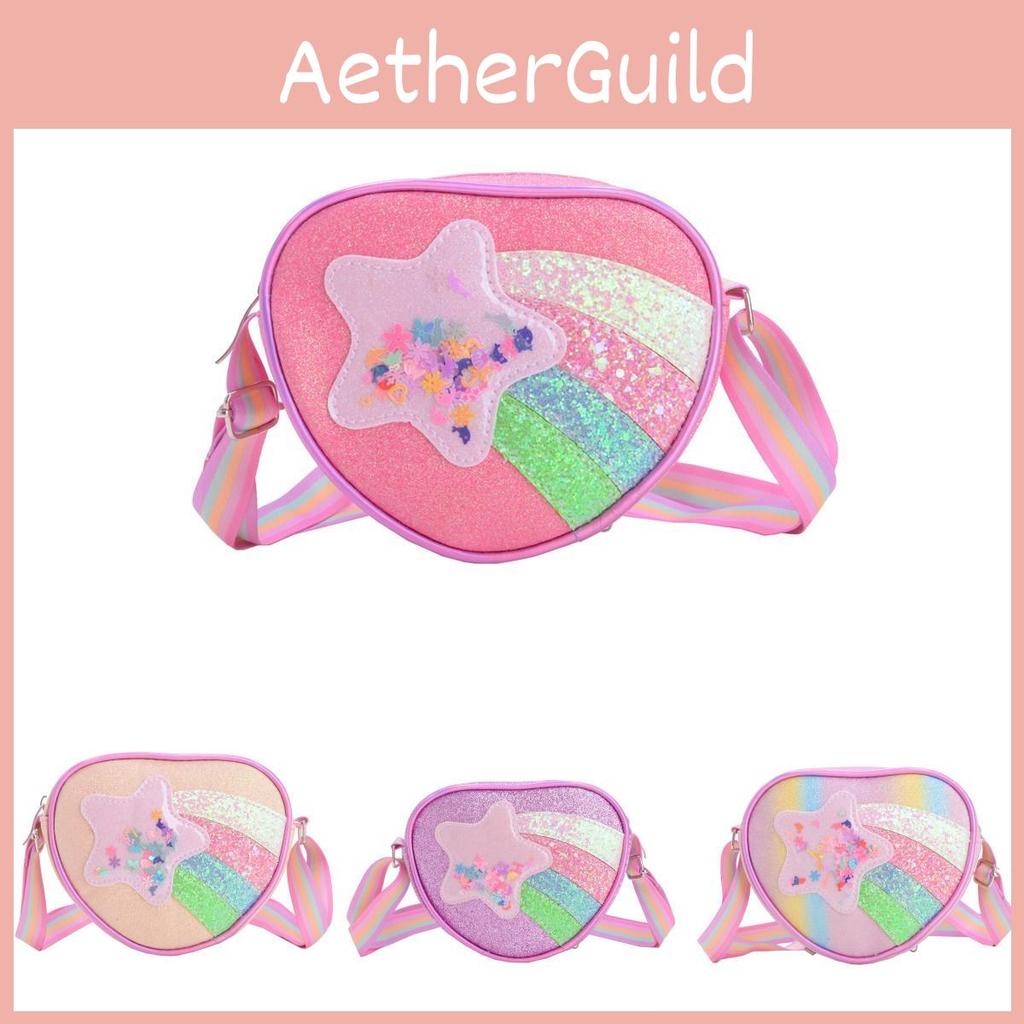 Adorable Cartoon Star Shoulder Bag For Girls With Rainbow Stripes And Heart Design