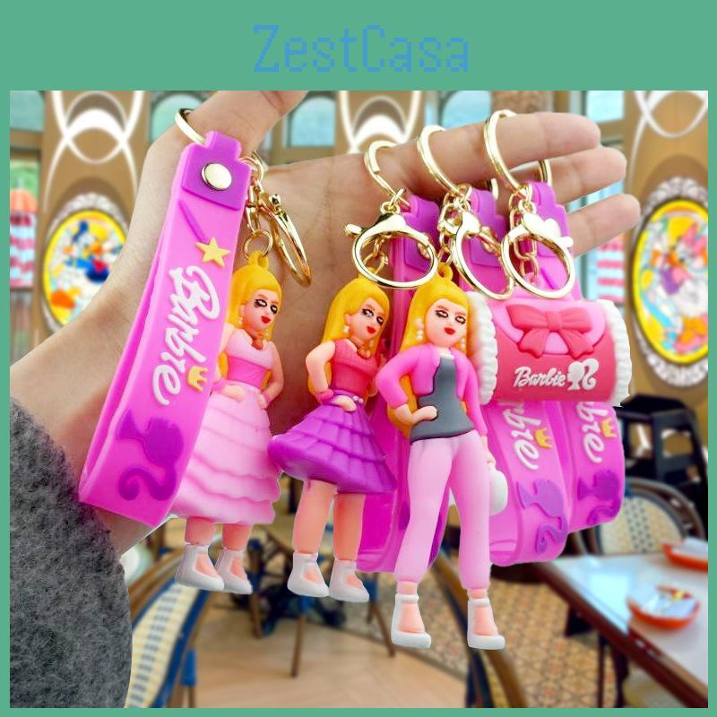 Charming Barbie Princess Rubber Keychain Cute Trendy Doll Key Accessory