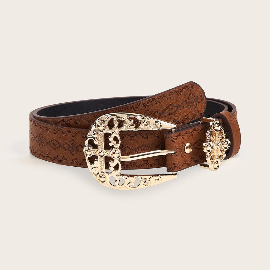 Elevate your everyday look with this trendy and unique unisex belt featuring a distinctive European and American style. Made from high-quality faux leather, this belt is not only stylish but also durable and long-lasting. The intricate brown texture and special printed pattern on the belt add a touch of sophistication and flair to any outfit.
