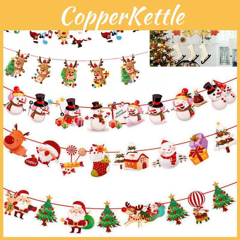 Merry Christmas Banner Pennant Hanging Flag Bunting Santa Claus Reindeer Snowman