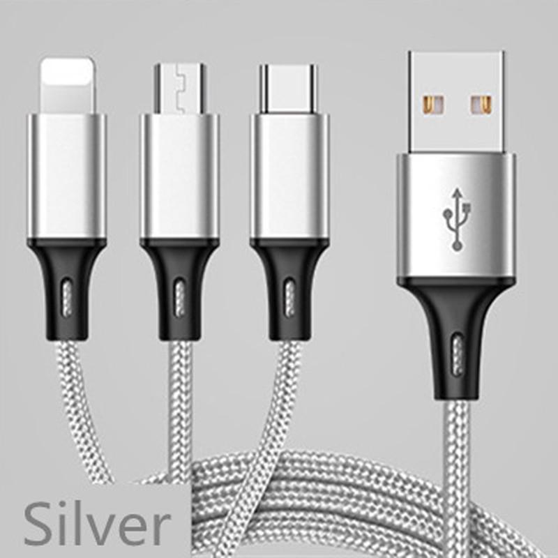 This three-in-one data cable is perfect for users with multiple devices or for those who frequently switch between different devices. The fast charging capability ensures that your devices are powered up quickly and efficiently. The braided material adds durability and prevents tangling, making it a reliable choice for everyday use.Featuring fast-charging capabilities, this cable is designed to power up your devices in no time, so you can stay connected and productive throughout the day. Whether you need to charge your smartphone, tablet, or any other compatible device, this 3 in 1 data cable has got you covered.