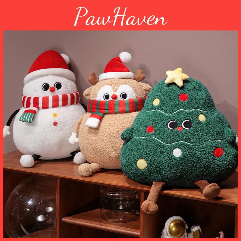 This plush cushion features embroidered Santa Claus, snowman, Christmas tree, and reindeer designs, adding festive charm to holiday living spaces. Made of soft plush fabric, Ideal for holiday decorating or cozying up during winter, its easy to care forsimply wipe clean with a damp cloth.