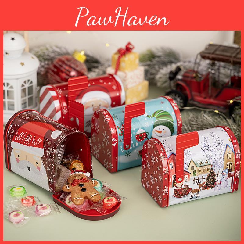 Charming Red Christmas Mailbox Decorative Metal Gift Box For Festive Candy Storage