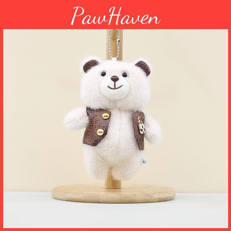 Features: Type: Plush Bear Keychain Animal Classification: Bear Filling Material: PP Cotton Plush Fabric Type: Short Plush Color Options: Beige Vest Bear, Brown Vest Bear, Gray Vest Bear