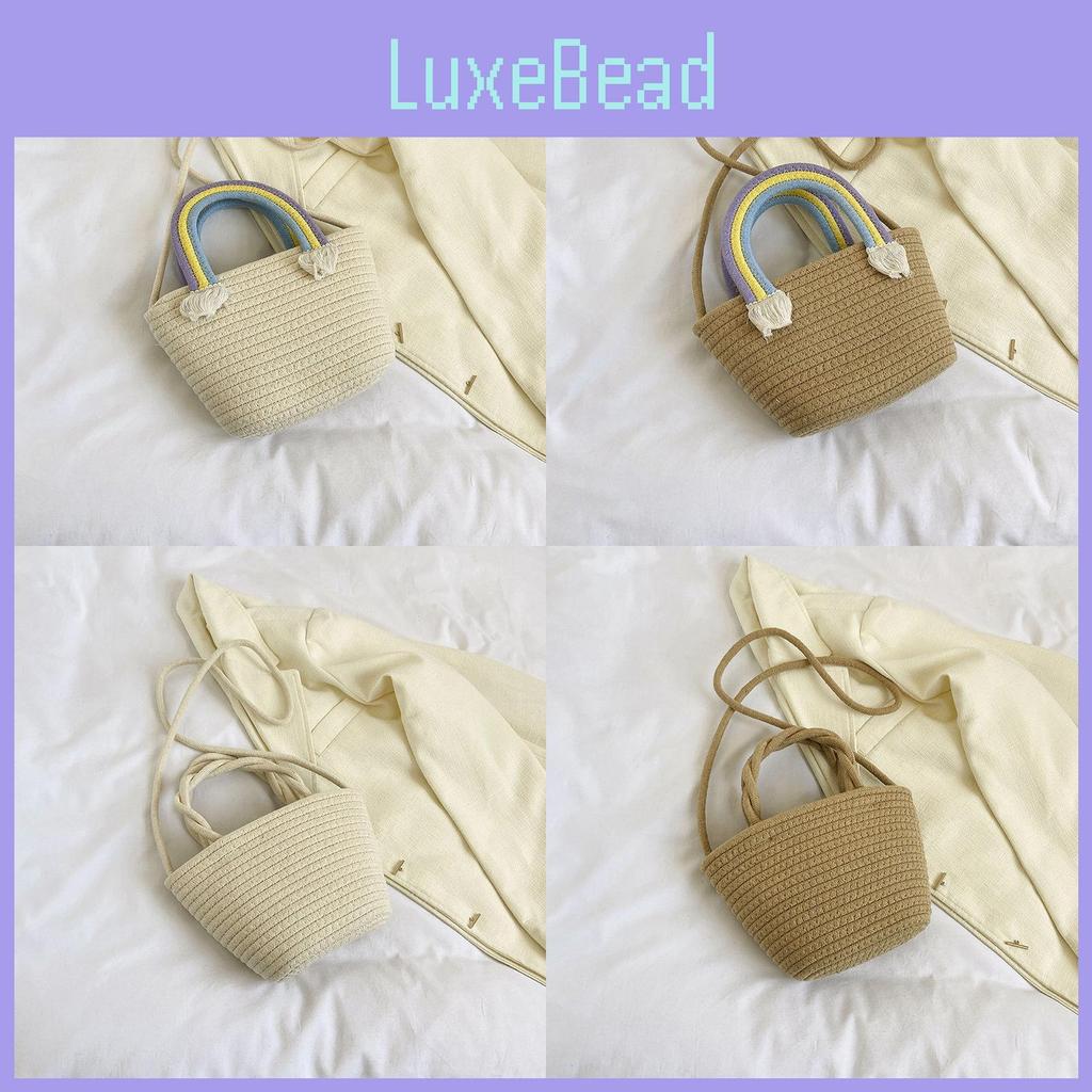 Description: Introducing the Cozy Cotton Yarn Rainbow Cloud Handbag, a delightful addition to your summer wardrobe that captures the essence of laid-back beach days and sunny adventures. This charming woven beach bag is designed for those who appreciate both style and functionality, making it the perfect accessory for your relaxed outings. Available in two elegant colorwayscrisp white and earthy khakithis handbag effortlessly complements any outfit, ensuring you look fabulous whether you're strolling along the shore or heading to a picnic in the park.