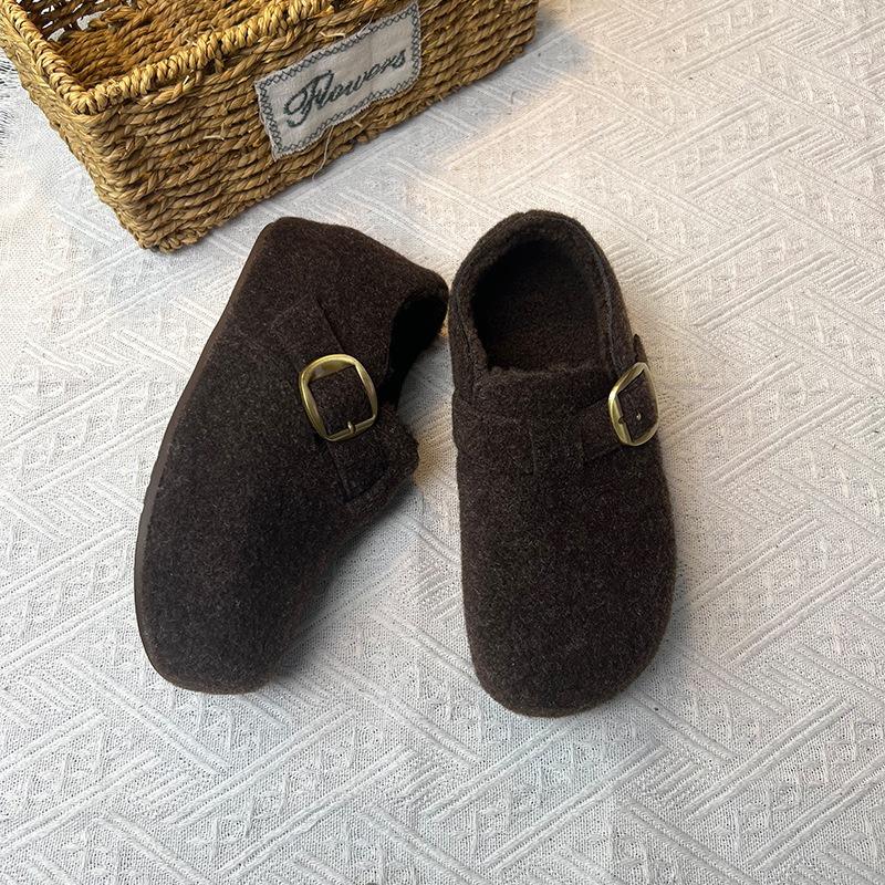 Shoes women's new winter flat-bottomed one-pedal lazy plush warm cotton shoes fluffy shoes