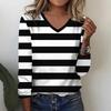Fashion Flower stripe pattern 3D Print Women V-Neck Long Sleeve T-Shirt Autumn Casual Breathable Women's Clothing Apparel Tops