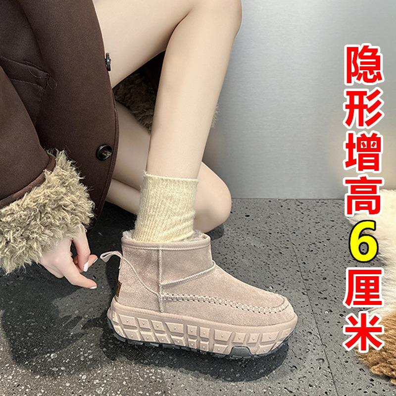 Small snow boots women's winter new tire sole short boots inner height increase non-slip warm cotton shoes Mao Mao shoes