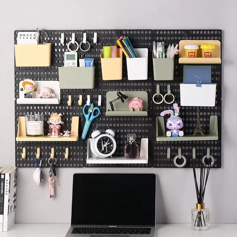 Kawaii Hole Board Dormitory Wall Shelf Decoration Free Punching Adhesive Students Study Wall Mounted Storage Rack Home Organizer