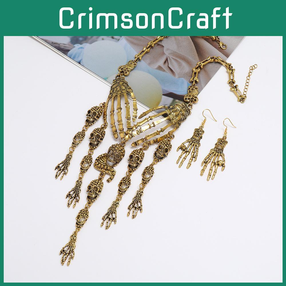 Fashion Hand Bone Women Necklace And Earring Set With Skeleton Tassel Design For Gothic Costumes