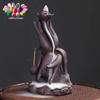 Zen Creative Lotus Buddha Hand Handmade Purple Clay Backflow Incense Burner Incense Stick Holder for Home Ornament Tea Pet