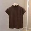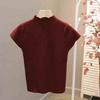 Women's Slim Fit Knitted White Top - Summer 2025 Short Sleeve Half High Neck Tee