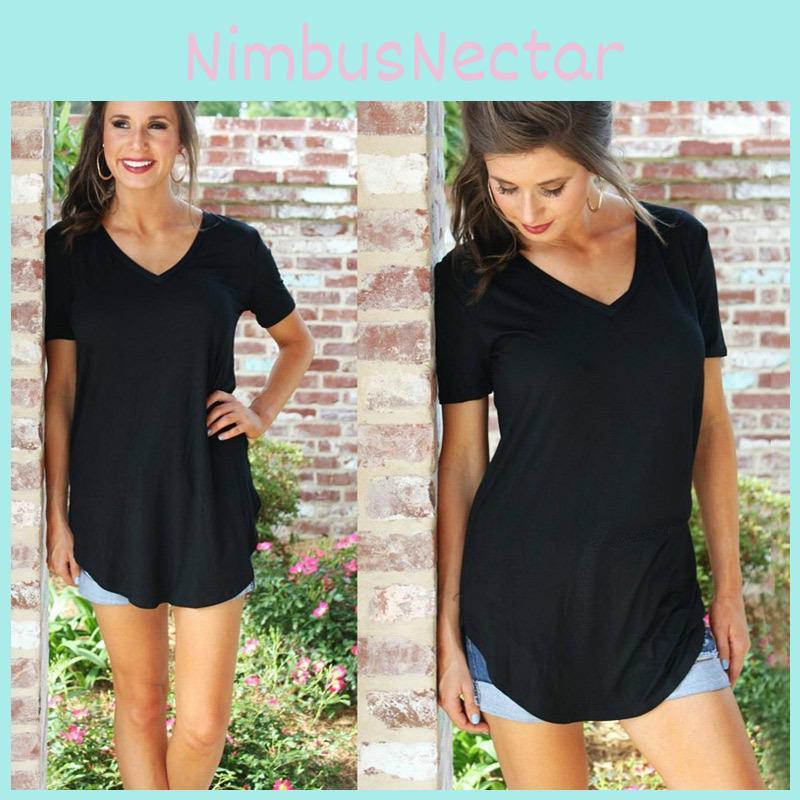 Stylish Women's Short Sleeve V-neck Hem Loose Casual Tee T-shirt For Summer Days