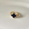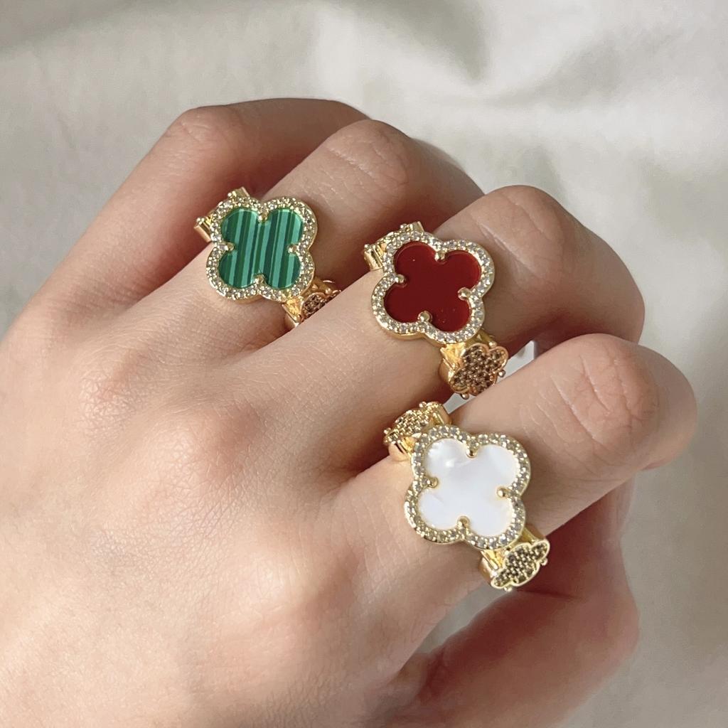 A niche high-end light luxury four leaf clover zircon ring for women with retro style and adjustable opening