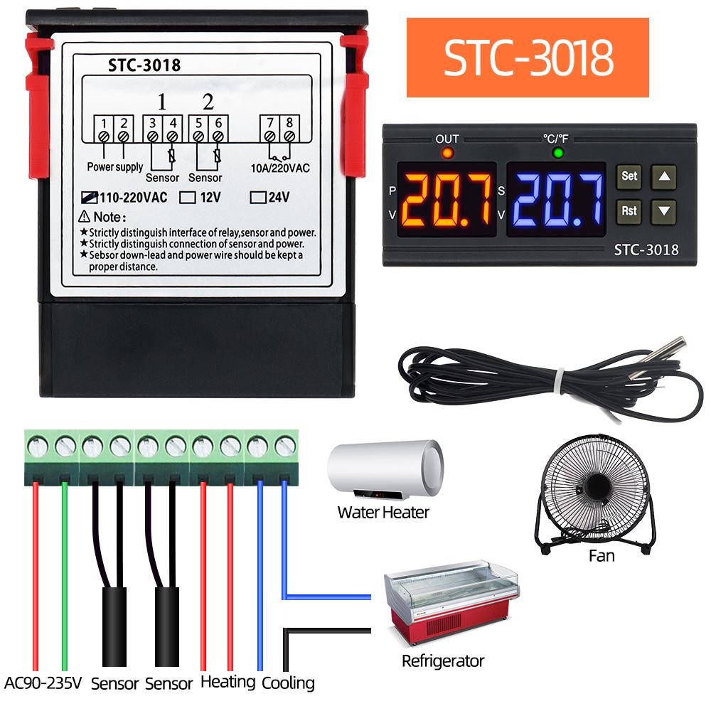 STC-3018 Termostat Digital Dual Controlor de Temperatură Termometru Comutator de Control 10A 12V 24V 220V Higrometru Incubator