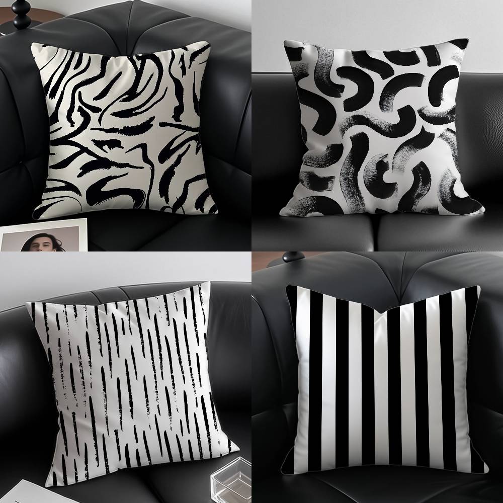 Black and White Striped Geometric Rectangle Pillow Case Anti-dustmite Pillowcase Invisible zipper silky short plush Sofa